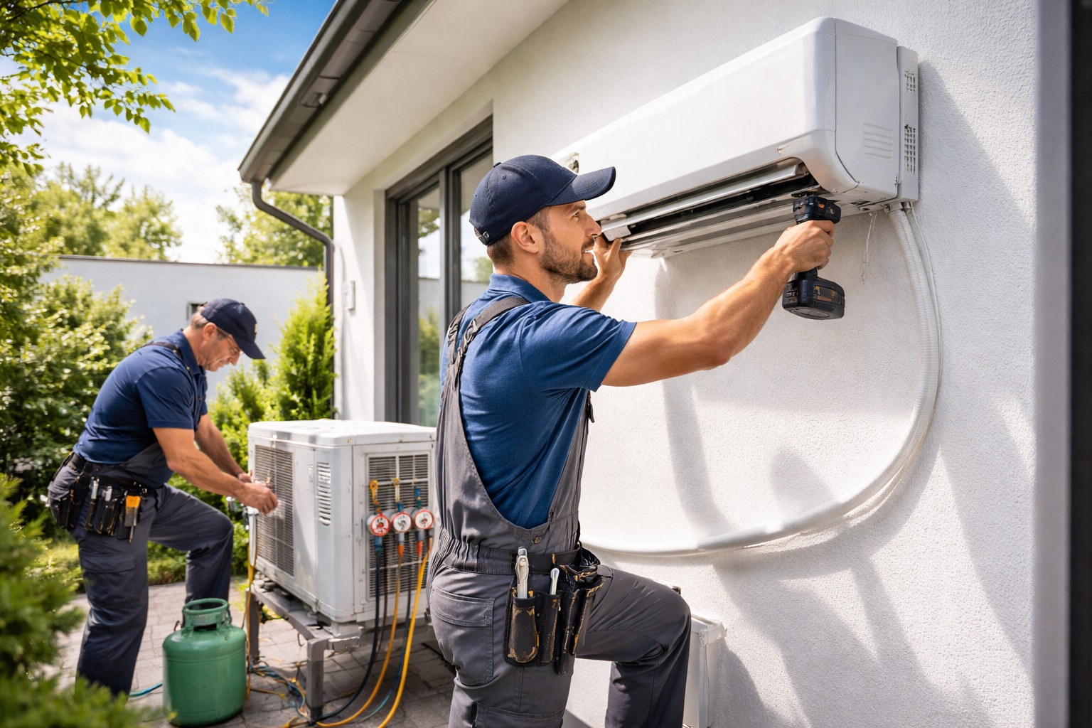 Concrètement, il est tout à fait possible de réaliser soi-même une partie de l’installation d’un climatiseur mural : fixation des unités, perçage des murs, passage des liaisons frigorifiques et électriques. En revanche, la manipulation du fluide frigorigène, le tirage au vide et la mise en service finale doivent impérativement être effectués par un professionnel certifié. C’est une obligation légale, mais aussi une garantie de sécurité, de performance et de longévité pour votre équipement.